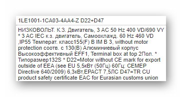 Siemens 1LE1001-1CA03-4AA4-Z D22+D47